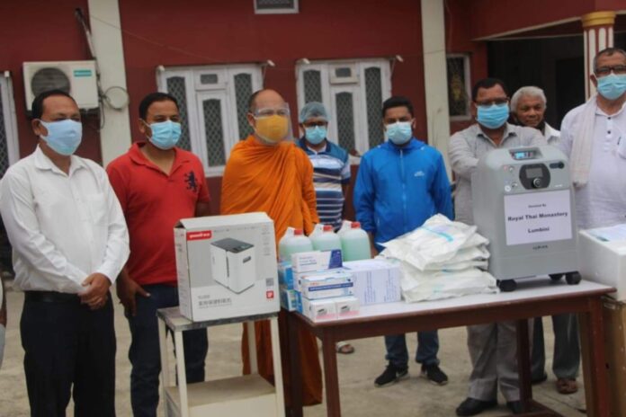 थाई मोनाष्ट्रीले अक्सिजन कन्सनट्रेटर-२ थान,अक्सिमिटर २ थान,मास्क , सेनिटाईजर र ग्लोब्स लगायत ६ लाख रूपयाँ बराबरका स्वास्थ्य सामाग्री सहयोग गरेको हो ।