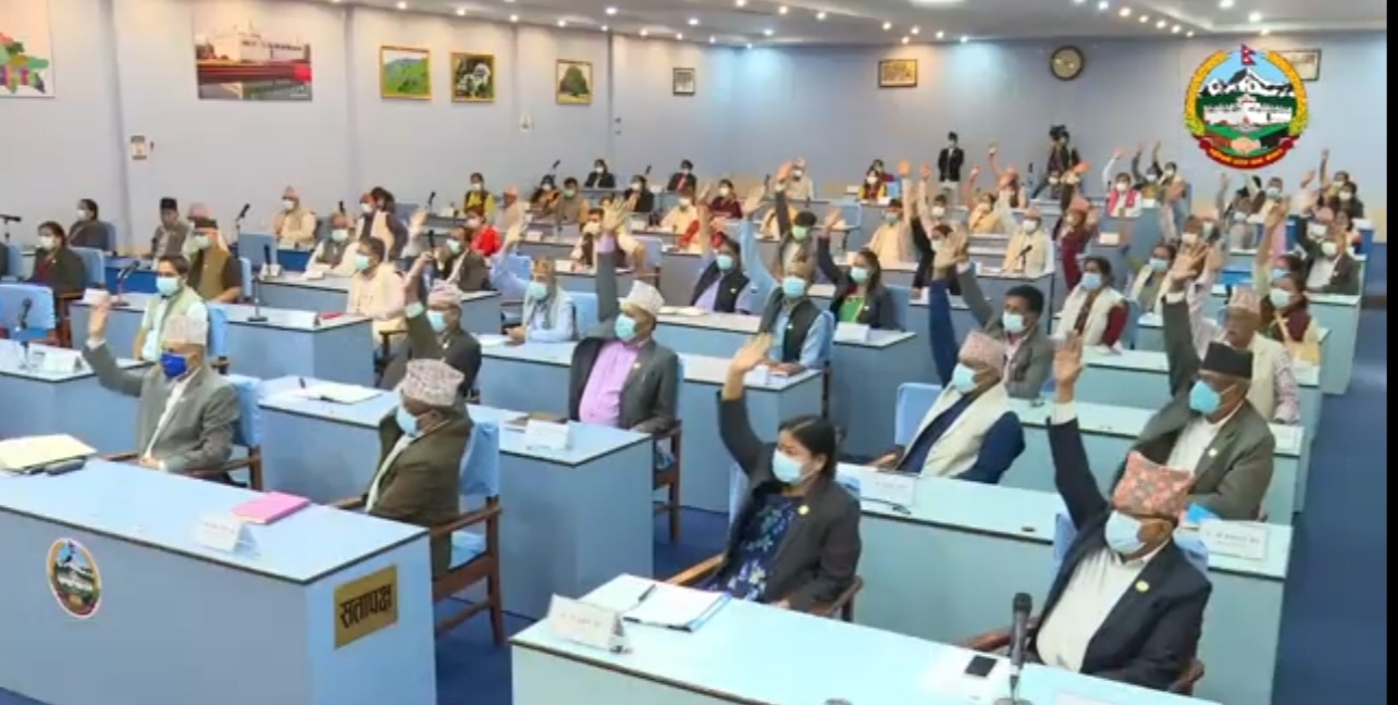 नीति तथा कार्यक्रममाथि प्रदेश सभा सदस्यहरूले उठाएका प्रश्नको मुख्यमन्त्री शंकर पोखरेलले जवाफ दिएसँगै आइतबार प्रदेश सभाकाे बहुमतबाट नीति तथा कार्यक्रम पारित भएकाे हो ।