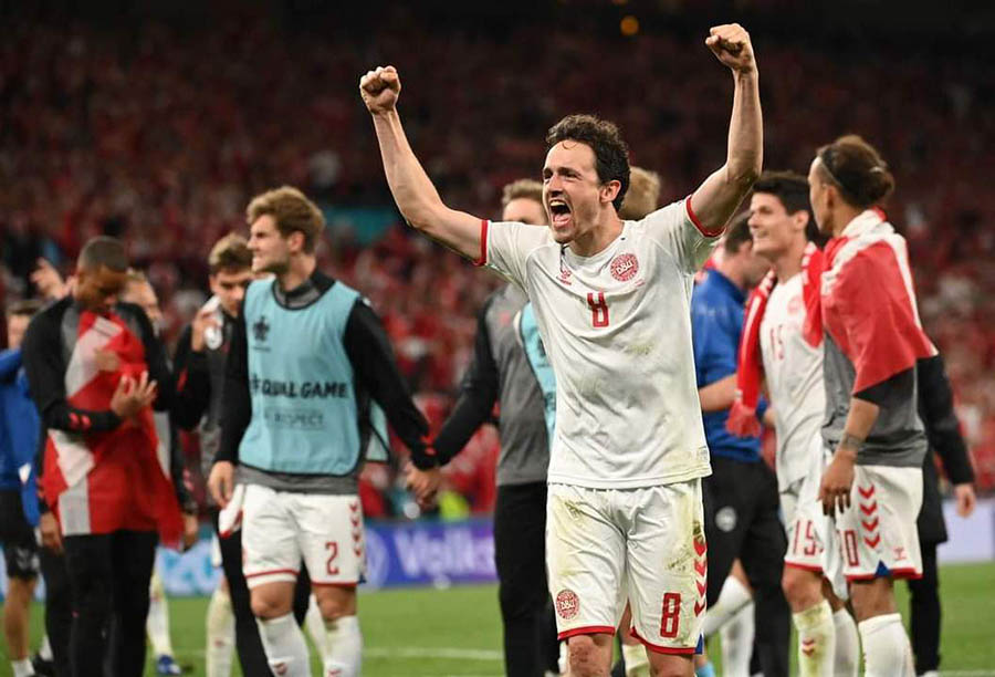समूह ‘बी’ अन्तर्गत सोमबार राति भएको खेलमा रुसलाई ४-१ ले पराजित गर्दै डेनमार्क समूह उपविजेताको रुपमा अन्तिम १६ मा पुगेको हो ।