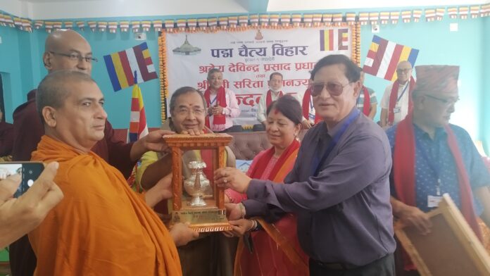 यस्तै भवन निर्माणमा सहायाेग गर्ने मैयादेवी शाक्यलाई समेत सम्मान गरिएकाे पद्मम चैत्य बिहार बुटवलका अध्यक्ष सुरेश रत्न बज्राचार्यले जानकारी दिए ।