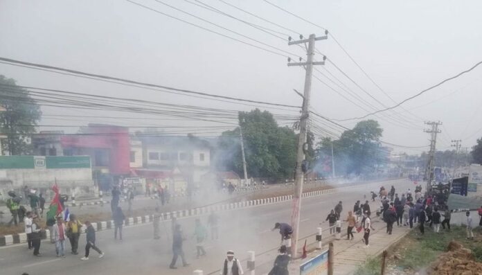 भिड नियन्त्रण गर्न प्रहरीले एक दर्जन अश्रुग्यास र तीन राउन्ड हवाई फायरसमेत गरेको छ ।