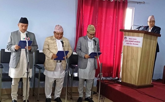 मुख्यमन्त्री थापासँगै तीन जना मन्त्रीले पनि शपथ लिएका छन् ।