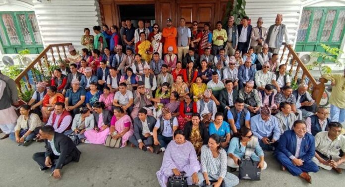 संघीय सरकारकाे चालु आर्थिक वर्ष २०८०/०८१ को अन्तिम किस्ताबापत वित्तीय समानीकरण अनुदान २५ प्रतिशत कटौती गर्ने निर्णयविरुद्ध स्थानीय तहका प्रतिनिधिले विरोध प्रदर्शन गरेका हुन् ।