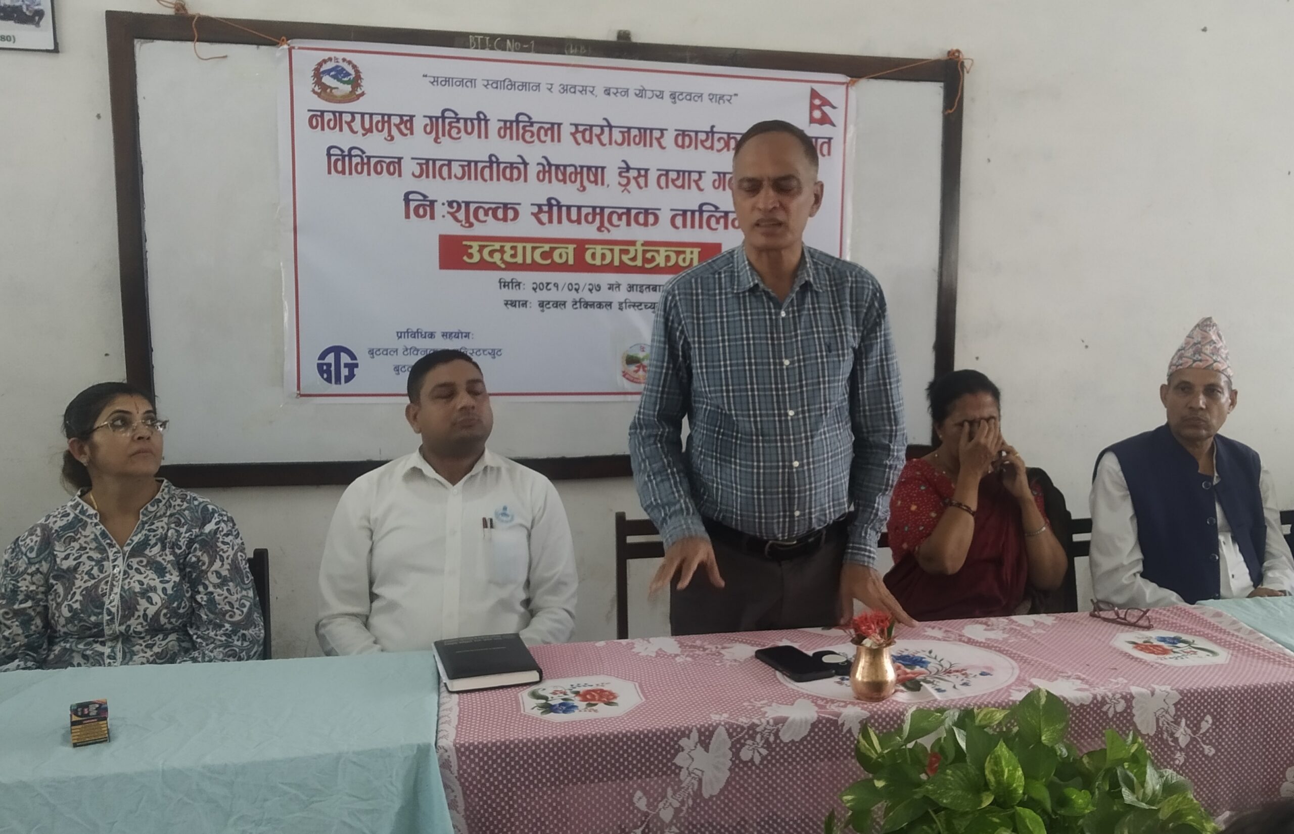 बुटवलमा आजदेखि नगरप्रमुख गृहिणी महिला स्वराेजगार कार्यक्रम अन्तर्गत विभिन्न जातजातिको भेषभुषा,ड्रेस तयार गर्ने २ महिने निशुल्क सीपमूलक तालिम सुरु भएको छ ।