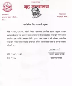 सरकारले असार ३ गते सार्वजनिक बिदा दिएको छ ।