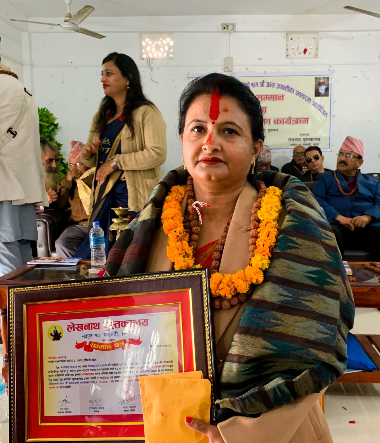 झापाको लेखनाथ पुस्तकालयद्वारा हरेक बर्ष लेखनाथ पौड्याल जयन्तिको अवसरमा प्रदान गर्दै आएको लेखनाथ राष्ट्रिय पुरस्कार-०८१ यस बर्ष पाल्पाली साहित्यकार कवि भावना खनाललाई प्रदान गरिएको हो ।