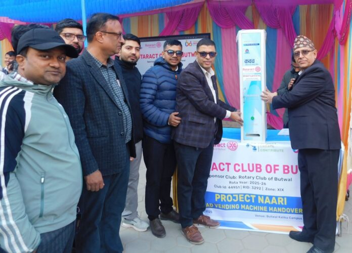 रोट्याक्ट क्लव अफ बुटवलले बुटवलस्थित कालिका क्याम्पसलाई सेनेटरी प्याड मेसिन हस्तान्तरण गरेको छ ।