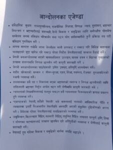 आन्दोलनकारीहरूले मुख्यतया निम्न मागहरू अघि सारेका छन् :