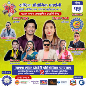 बुटवलमा जारी १६ औं राष्ट्रिय औद्योगिक प्रदर्शनी, कृषि, प्रविधि तथा पर्यटन महोत्सवको प्रदर्शनीमा सांस्कृतिक कार्यक्रमको मुख्य आकर्षण रहेको लोकदोहोरी प्रतियोगिताको उपाधि खस्यौली रोधी घर बुटवलले जितेको छ ।