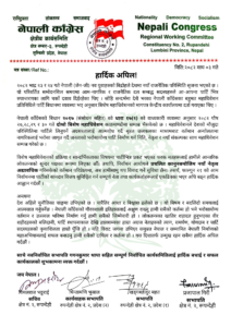 नेपाली काँग्रेसको बिधान २०१७ (संसोधन सहित) को धारा १७(२) को वाध्यकारी व्यवस्था अनुसार २०८२ पौष २७,२८,२९ र ३० गते दोश्रो बिशेष महाधिवेशन काठमाण्डौमा सम्पन्न भैसकेको छ । महाधिवेशनले देशको मौजुदा परिस्थितिमा पार्टिले लिनुपर्ने अग्रसरतालाई आत्मवोध गर्दै बृहत छलफलका माध्यमबाट वर्तमान अन्योलतामा नागरिकलाई भरोसा जागृत गर्दै जनताको भरोसायोग्य पार्टि निर्माण गर्ने नीति,नेतृत्व र नयाँ संकल्पका साथ महाधिवेशन सम्पन्न गरेको जनाउँदै विज्ञप्तिमा नेपाली काँग्रेसको गौरवशाली इतिहासलाई अक्षुण राख्नु हामी सबैको कर्तब्य हो भने भरोसायोग्य वर्तमान र उज्ज्वल भविष्य निर्माण गर्नु हामी सबैको जिम्मेवारी भएको उल्लेख गरिएको छ ।