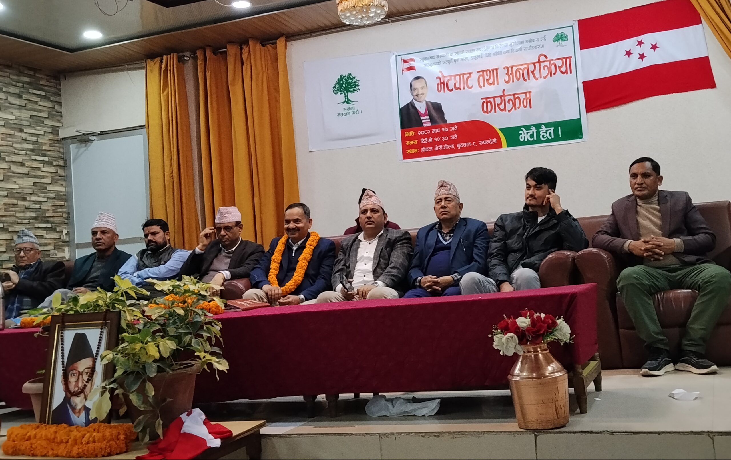 कार्यक्रममा रूपन्देही क्षेत्र नं २ मा नेपाली कांग्रेसका उम्मेदवार चुन्न प्रसाद पाैडेलले देशका भएको राजनीतिक परिवर्तन र विकासको जग बसाल्ने काम कांग्रेसकै अगुवाइमा भएको भन्दै बिग्रदाे मुलुककाे अवस्थामा सुधार गर्न कांग्रेसलाई जिताउनुपर्ने बताए ।