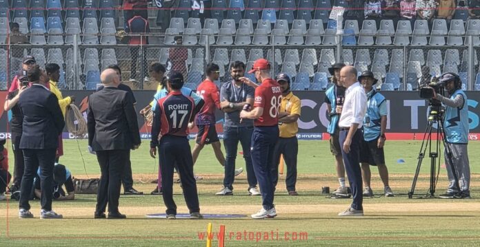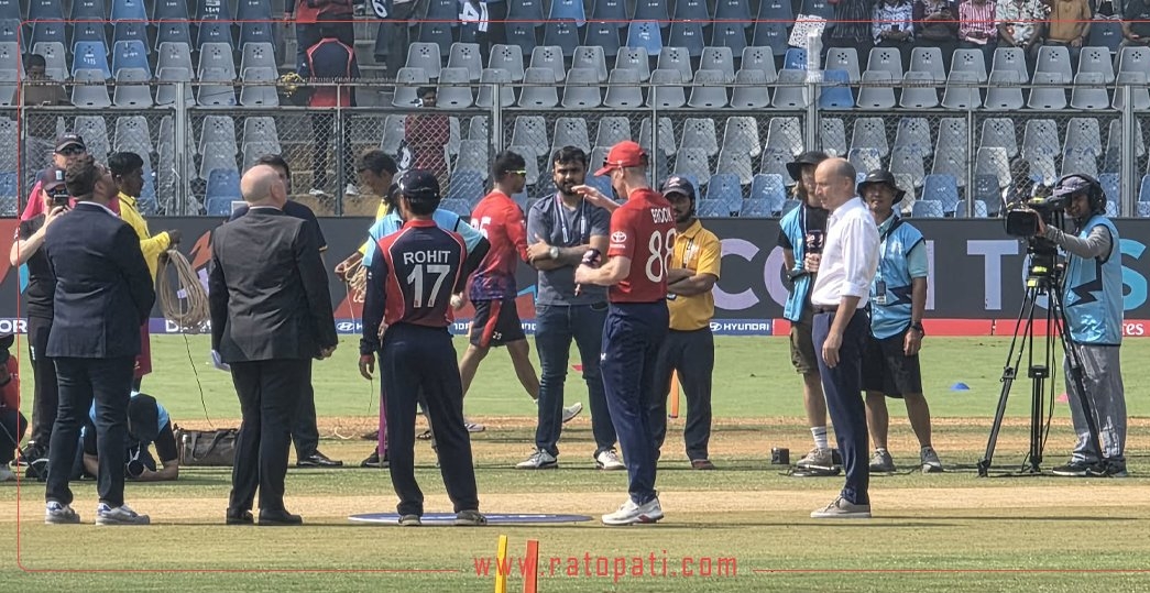 ट्वान्टी–२० विश्वकप क्रिकेटमा इंग्ल्यान्डविरुद्धको खेलमा नेपाली टोलीले पहिला फिल्डिङ गर्ने भएको छ । इंग्ल्यान्डका कप्तान हृयारी ब्रुकले टस जितेपछि मुम्बईको वानखेडे क्रिकेट रंगशालामा पहिला ब्याटिङ गर्ने भएको हो ।