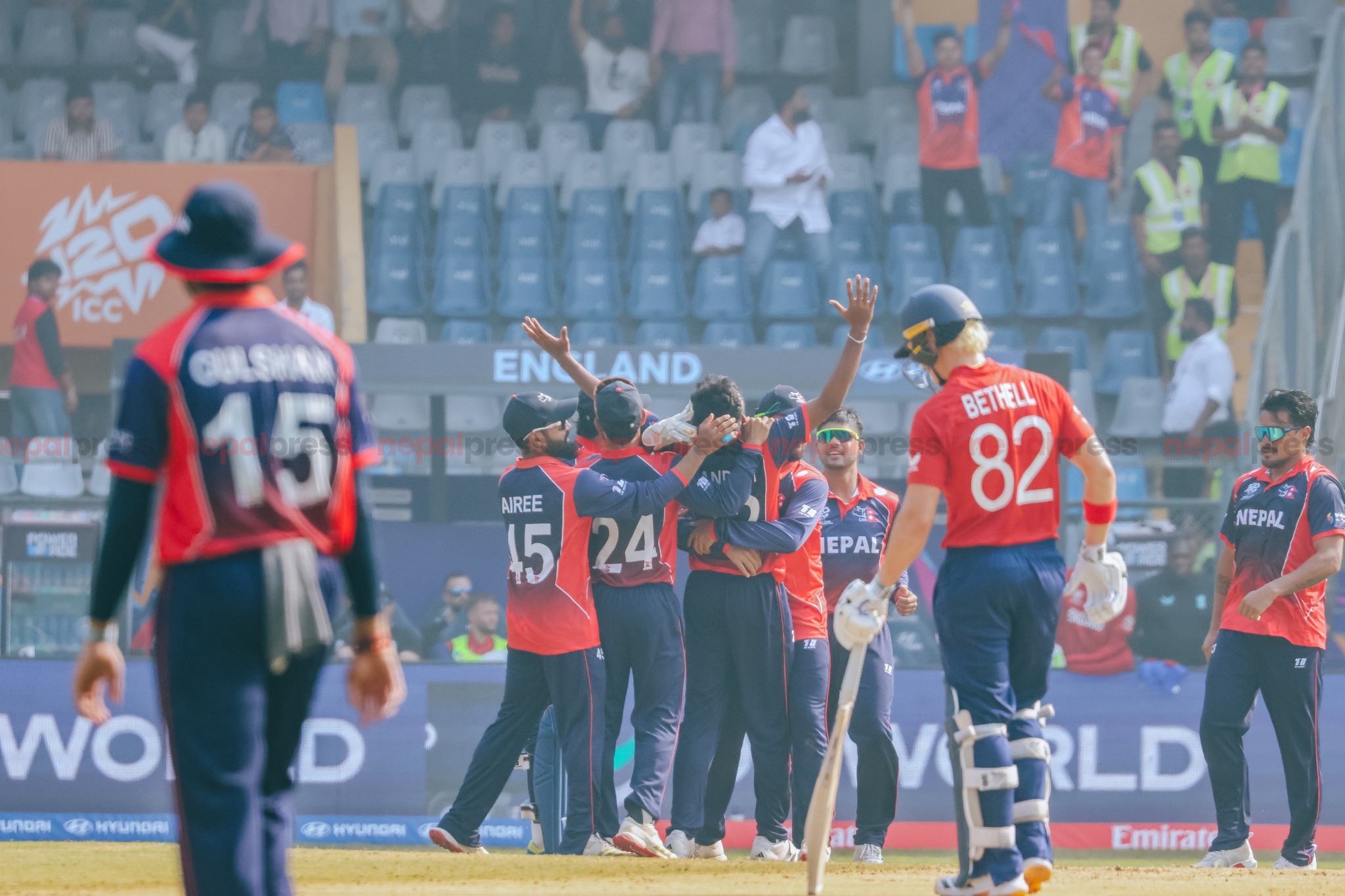 आइसीसी पुरुष टि–ट्वान्टी विश्वकप क्रिकेट प्रतियोगिताको पहिलो खेलमा नेपालले इङ्ल्यान्डविरुद्ध प्रतिस्पर्धा गरिरहेको छ ।