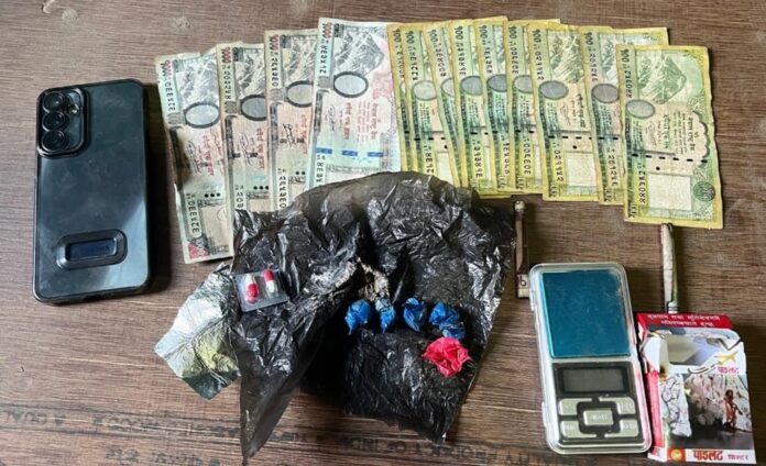 कटुवालको साथबाट लागुऔषध तौल मेसिने, मोवाईल र ५ हजार रुपैयाँ समेत बरामद भएको छ ।