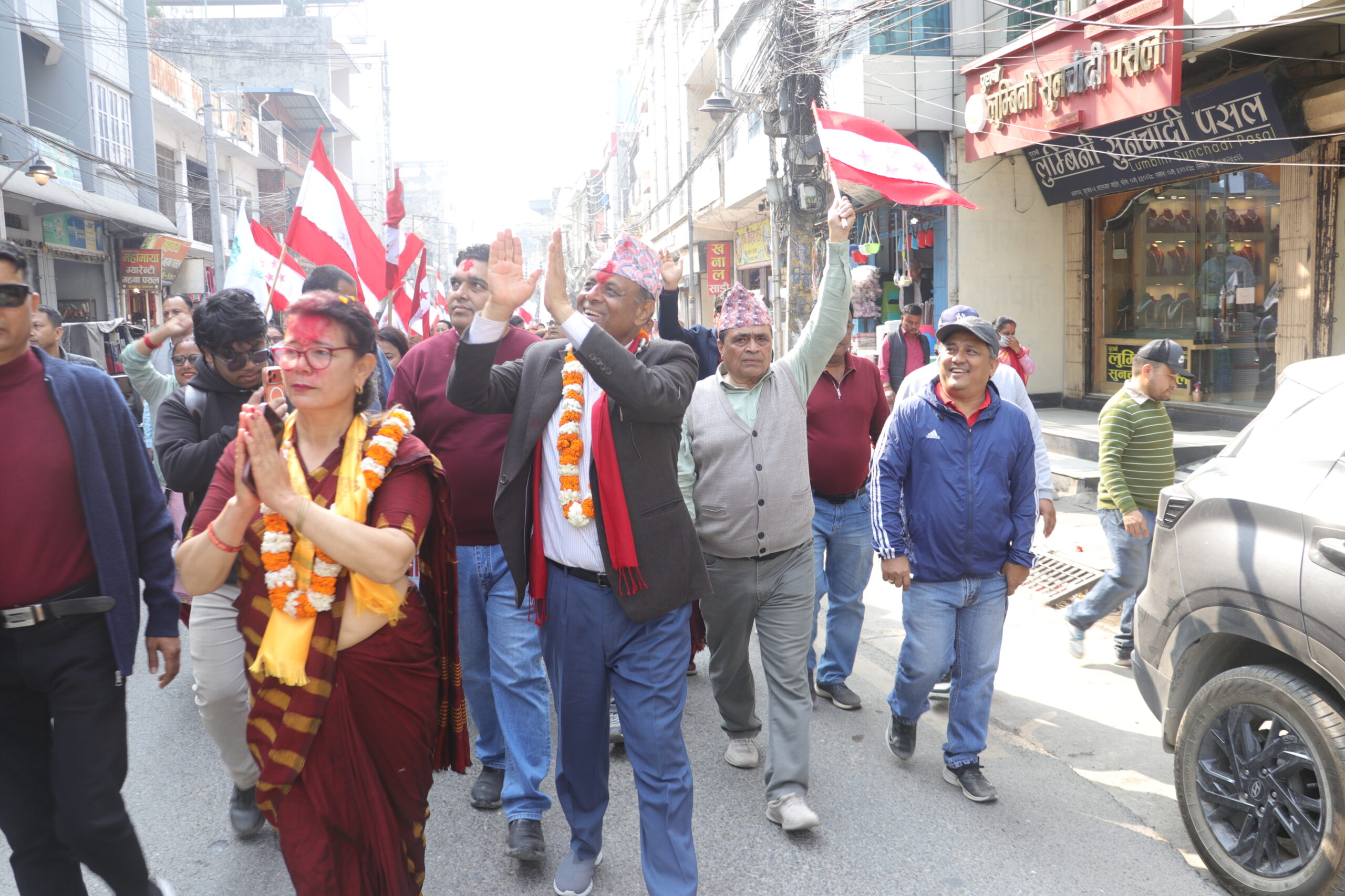 आज मंगलबार बुटवलका तीनवटा वडामा घरदैलो,भेटघाटका क्रममा मतदाताहरुको उल्लेख्य सहभागिताले उम्मेदवारलाई हौसला र उत्साह थपिएको हो । पौडेलले मंगलबार बुटवल उपमहानगरपालिका वडा न ४, ५ र ६ मा सयौँंको उपस्थितिमा घरदैलो अभियान भएको हो । घरदैलोमा पहिरो र सुकुम्बासी समस्यामा समाधान गरिदिन मतदाताले आग्रह गरेका थिए । उम्मेदवार पौडेलले मतदाताको गुनासाहरु सम्बोधनको प्रतिबद्धता जनाए । मतदाताको घरदैलो कार्यक्रममा रहेका चुन्नप्रसाद शर्मा पौडेलले मतदाताको समस्या सुन्नेदेखि ज्येष्ठ नागरिकको आशीर्वाद थाप्नमा व्यस्त भए । पौडेल र समानुपातिक उम्मेदवार रिता सेन ओलीले घरदैलो अभियानको आठौं दिन बुटवलका विभिन्न वडामा सक्रिय सहभागिता जनाए । उनले मतदाताले घरघरमा टीका,माला र खादा,दहि खुवाएर सम्मान गर्दै आशिर्बाद दिएका छन् ।बिहान बुटवल उपमहानगरपालिका–४ को लक्ष्मीनगर गेटबाट सुरु भएको अभियान लक्ष्मीनगर, आदर्शनगर, राममन्दिर लाइन हुँदै अमरपथ क्षेत्रसम्म पुगेको थियो ।स्थानीय बासिन्दाले विशेषगरी वर्षायाममा देखिने पहिरोको जोखिम, अव्यवस्थित बस्ती, सुकुम्बासी व्यवस्थापन, सडक र ढल निकासका समस्या उठाए । उम्मेदवार पौडेलले मतदातासँग भने, –‘हामी चुनाव जित्न मात्र होइन, दीर्घकालीन समाधानका लागि आएका हौं ।’पहिरो नियन्त्रण, सुरक्षित बस्ती निर्माण र सुकुम्बासी समस्याको कानुनी समाधानका लागि संघीय तहबाट पहल गर्ने प्रतिवद्वता जनाए । उनले थपे–‘बुटवललाई व्यवस्थित, सुरक्षित र अवसरयुक्त सहर बनाउन स्पष्ट योजना लिएर अघि बढेका छौ ।’त्यसैगरी समानुपातिक उम्मेदवार ओलिले पनि मतदातासँग महिला, श्रमिक, दलित र विपन्न समुदायका मुद्दा अझै पनि ओझेलमा रहेकाले संसदमा पुगेपछि यी वर्गको आवाज मजबुत रूपमा उठाउने प्रतिबद्धता ब्यक्त गरिन् । दिउँसो १२ बजेदेखि टोली वडा नं. ५ मा पुगेको थियो । पुरानो बसपार्क,न्युरोड, सुकुम्बासी टोल, सब्जी मण्डी हुँदै अमरपथ क्षेत्रमा पुगेका उम्मेदवारहरूले व्यवसायीसँग छलफल गरेका थिए । व्यापारीहरूले बजार व्यवस्थापन, पार्किङ अभाव र व्यापारमा आएको मन्दीबारे गुनासो गरेका थिए । यस सन्दर्भमा उम्मेदवार पाैडेलले स्थानीय व्यवसायी बलियो भए मात्र अर्थतन्त्र चलायमान हुने, व्यवस्थित बजार, पार्किङ व्यवस्थापन र साना व्यवसायीको संरक्षणका लागि नीति र बजेट ल्याउन पहल गर्ने आश्वासन दिए । दिउँसो वडा नं. ६ अन्तर्गत नेपालगञ्ज रोड, ट्राफिकचोक, मैत्रीपथ, श्रवणपथ लगायतका क्षेत्रमा घरदैलो अभियान गरिएको थियो । त्यहाँका बासिन्दाले खानेपानी, ढल निकास र सडक स्तरोन्नतिका विषयमा ध्यानाकर्षण गराएका थिए ।