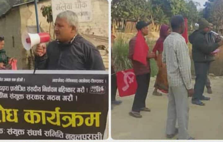 क्रान्तिकारी कम्युनिस्ट पार्टी नेपाल, नेकपा ( बहुमत ) सहित चारदल सम्मीलित संयुक्त संघर्ष समिति नवलपरासीले निर्वाचन बहिष्कारको अपिल गर्दै कोण सभा एवं घरदैलो सम्पन्न गरेको हो ।