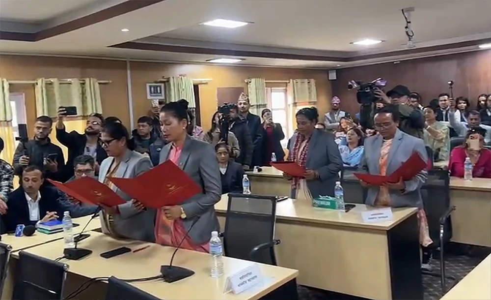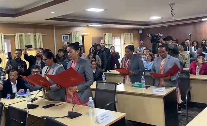 राष्ट्रिय सभाका नवनिर्वाचित सदस्यहरूले पद तथा गोपनीयताको शपथ ग्रहण गरेका छन् । साेमबार सिंहदरबारस्थित कानुन,न्याय तथा मानवअधिकार समितिको हलमा आयोजित समारोहमा राष्ट्रिय सभा अध्यक्ष नारायण दाहालले नव निर्वाचित सदस्यहरूलाई शपथ गराएका हुन् ।