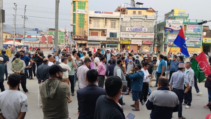 शनिबार अपरान्ह एमाले जनवर्गीय संगठनहरूकाे आह्वानमा बुटवलकाे मिलनचोकमा बिराेध प्रदर्शन गरेका हुन् ।