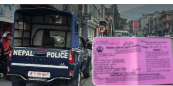 ट्राफिक प्रहरीले सडकमा पार्क गरिएको प्रहरीकै सवारीसाधनलाई कारबाही गरेको छ ।