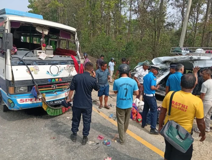 रुपन्देहीको देवदहमा दुई सवारीसाधन एकआपसमा ठाेक्किदा २ जनाको मृत्यु भएको छ भने २७ जना घाइते भएका छन् ।